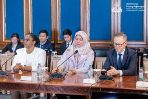 ឯកឧត្តមអនុរដ្ឋលេខាធិការបានជម្រាបពីបច្ចុប្បន្នភាពនៃចំនួនពលរដ្ឋខ្មែរដែលបានស្លាប់ និងរងរបួស ចំនួនជនភៀសសឹក ព្រមទាំងការបំផ្លិចបំផ្លាញទ្រព្យសម្បត្តិផ្សេងៗ ដែលបង្កពីការវាយប្រហាររបស់កងកម្លាំងប្រដាប់អាវុធថៃ មកលើទឹកដី អធិបតេយ្យនិងតំបន់ជនស៊ីវិលកម្ពុជា។ ឆ្លៀតឱកាសនោះ ឯកឧត្តមក៏បានថ្លែងអំណរគុណយ៉ាងជ្រាលជ្រៅចំពោះជំនួយ មនុស្សធម៌ទាំង អស់របស់ប្រទេសជាមិត្ត ដែលបាននិងកំពុងជួយដល់កម្ពុជា ជាពិសេសប្រទេសចិន ដែលជំនួយទាំងនេះបានផ្តល់ដោយត្រង់ ឬតាមរយៈអង្គការអន្តរជាតិ ឬ អង្គការមិនមែនរដ្ឋាភិបាលដើម្បីរួមចំណែកជួយដល់ពលរដ្ឋភៀសសឹក។ On the afternoon of 2 January 2025, His Excellency CHANN Rotana, Under Secretary of State and Acting Spokesperson of the Ministry of Foreign Affairs and International Cooperation, briefed 25 representatives from 22 Diplomatic Missions and International Organizations in Phnom Penh on the latest development of the Cambodia-Thailand Border Situation. The briefings focused on three outstanding issues: 1) Joint Statement of the 3rd Special General Border Committee (GBC) of 27 December 2025; 2) The key outcomes of Trilateral Meeting of Foreign Ministers and senior military officials of Cambodia, Thailand and China, held on 29 December 2025 in Yunnan Province of China; and 3) The release of 18 Cambodian soldiers on 31 December 2025. The Under Secretary of State touched on the updated civilian casualties, including death toll, injuries and displaced persons, and extensive damages caused by the indiscriminate attacks by Thai armed forces over Cambodia’s territory and sovereignty as well as on civilian areas. Taking that opportunity, He also expressed his sincere thanks to all humanitarian assistances extended to Cambodia from all friendly countries, especially China, either directly or through International Organizations or NGOs.