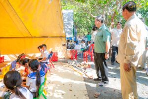 សម្ដេចមហាបវរធិបតី ហ៊ុន ម៉ាណែត ជួបសំណេះសំណាលសាកសួរសុខទុក្ខបងប្អូនប្រជាពលរដ្ឋភៀសសឹកក្នុងខេត្តព្រះវិហារ នៅមណ្ឌលសុវត្ថិភាពវត្តបាក់កាំចំនួន៥៤០គ្រួសារ ស្ថិតនៅស្រុកត្បែងមានជ័យ ខេត្តព្រះវិហារ។ សូមថ្លែងអំណរគុណដល់ក្រុមការងារ ក្រសួងពាក់ព័ន្ធ អាជ្ញាធរគ្រប់លំដាប់ថ្នាក់ អ្នកស្ម័គ្រចិត្ត សប្បុរសជន អង្គការជាតិ និងអន្តរជាតិ និងដៃគូផ្សេងៗ ព្រមទាំងផ្នែកពាក់ព័ន្ធទាំងអស់ ដែលបានយកចិត្តទុកដាក់ក្នុងការរៀបចំទីជម្រកសុវត្ថិភាព ផ្តល់ការឧបត្ថម្ភគាំទ្រដល់បងប្អូនប្រជាពលរដ្ឋភៀសសឹកទាំងអស់បានស្នាក់នៅបណ្តោះអាសន្នឱ្យមានសុវត្ថិភាព និងអាចស្នាក់នៅបានក្នុងគ្រាដ៏លំបាកនេះ។ រាជរដ្ឋាភិបាលបានគិតគូយ៉ាងយកចិត្តទុកដាក់ចំពោះផលប៉ះពាល់ដោយបានដាក់ចេញនូវវិធានការចាំបាច់ចំនួន៣ក្នុងការដោះស្រាយសម្រាប់បងប្អូនជនភៀសសឹកដែលអាចត្រឡប់ទៅលំនៅឋានវិញ, បងប្អូនជនភៀសសឹកដែលមិនទាន់អាចត្រឡប់ទៅលំនៅឋាន និងការស្តារហេដ្ឋានរចនាសម្ព័ន្ធដែលរងការខូចខាត។ ទី១- សម្រាប់បងប្អូនជនភៀសសឹកដែលអាចវិលត្រឡប់ទៅលំនៅឋានវិញបាន ក្រសួងស្ថាប័នពាក់ព័ន្ធ ជាពិសេសក្រសួងការពារជាតិ ក្រសួងមហាផ្ទៃ និងអាជ្ញាធរមូលដ្ឋាន បាននិងកំពុងខ្នះខ្នែងរៀបចំសម្របសម្រួលឱ្យជនភៀសសឹក អាចវិលត្រឡប់ទៅលំនៅឋានវិញ បានកាន់តែឆាប់តាមដែលអាចធ្វើទៅបាន។ ក្រោមការសម្របសម្រួលរបស់អាជ្ញាធរមីន និងក្រសួងស្ថាប័នពាក់ព័ន្ធ ប្រតិបត្តិករមីននានា ជាពិសេសមជ្ឈមណ្ឌលកម្ចាត់មីនកម្ពុជាស៊ីម៉ាក់ បាននិងកំពុងខិតខំយ៉ាងសកម្មនៅក្នុងការបោសសំអាតអាវុធយុទ្ធភណ្ឌមិនទាន់ផ្ទុះ ដើម្បីធានាថា ទីតាំងទាំងនោះ មានសុវត្ថិភាពគ្រប់គ្រាន់មុននឹងអនុញ្ញាតឱ្យបងប្អូនជនភៀសសឹកវិលត្រឡប់ទៅកាន់ទីតាំងទាំងនោះ។ ជាមួយការសម្រួលការវិលត្រឡប់ទៅកាន់លំនៅឋានរបស់បងប្អូន រាជរដ្ឋាភិបាល បានបង្កើតគណៈកម្មការចំពោះកិច្ចរៀបចំ និងគ្រប់គ្រងការស្តារជីវភាព និងហេដ្ឋារចនាសម្ព័ន្ធ ដែលខូចខាតពីជម្លោះព្រំដែនកម្ពុជា-ថៃ ដើម្បីរៀបចំ និងគ្រប់គ្រងការស្តារជីវភាព និងហេដ្ឋារចនាសម្ព័ន្ធដែលខូចខាតពីជម្លោះព្រំដែននេះ។ទី២-ចំពោះបងប្អូនជនភៀសសឹក ដែលមិនទាន់អាចត្រឡប់ទៅលំនៅឋានវិញបាន ដោយសារស្ថានភាពមិនទាន់អំណោយផល ចំពោះមុខនេះ រាជរដ្ឋាភិបាលតាមរយៈក្រសួងសេដ្ឋកិច្ច និងហិរញ្ញវត្ថុ ក្រសួងមហាផ្ទៃ ក្រសួងរៀបចំដែនដី នគរូបនីយកម្ម និងសំណង់ រដ្ឋបាលខេត្ត អាជ្ញាធរជាតិគ្រប់គ្រងគ្រោះមហន្តរាយ ព្រមទាំងក្រសួងស្ថាប័នពាក់ព័ន្ធ បាននិងកំពុងគិតគូរពង្រឹងលើជម្រកបណ្តោះអាសន្ន ឬក្នុងករណីចាំបាច់អាចផ្លាស់ប្តូរជម្រកបណ្តោះអាសន្នរបស់បងប្អូនទៅកាន់ទីតាំងមានភាពប្រសើរជាងបច្ចុប្បន្ន។ រាជរដ្ឋាភិបាល