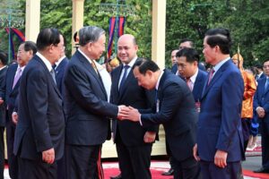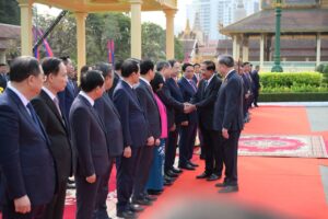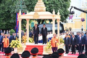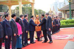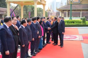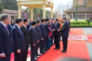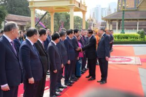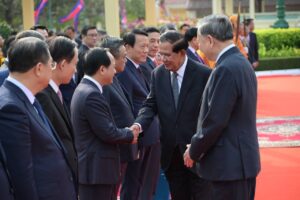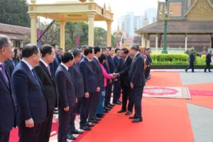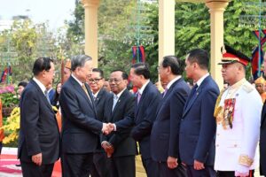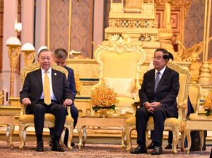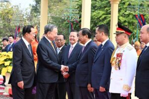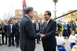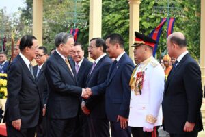 សម្ដេចតេជោ ហ៊ុន សែន អញ្ជើញជាព្រះរាជតំណាងដ៏ខ្ពង់ខ្ពស់ព្រះមហាក្សត្រ ទទួលបដិសណ្ឋារកិច្ចស្វាគមន៍ ឯកឧត្តមអគ្គលេខាធិការបក្សកុម្មុយនិស្តរដ្ឋវៀតណាម មកបំពេញទស្សនកិច្ចផ្លូវរដ្ឋនៅកម្ពុជា នៅព្រះបរមរាជវាំង នាព្រឹកថ្ងៃសុក្រ ៤រោច ខែមាឃ ឆ្នាំម្សាញ់ សប្តស័ក ពុទ្ធសករាជ ២៥៦៩ ត្រូវនឹងថ្ងៃទី៦ ខែកុម្ភៈ ឆ្នាំ២០២៦នេះ សម្ដេចអគ្គមហាសេនាបតីតេជោ ហ៊ុន សែន ប្រធានព្រឹទ្ធសភានៃព្រះរាជាណាចក្រកម្ពុជា បានអញ្ជើញជាព្រះរាជតំណាងដ៏ខ្ពង់ខ្ពស់បំផុត របស់ព្រះករុណាព្រះបាទសម្ដេចព្រះបរមនាថ នរោត្តម សីហមុនី ព្រះមហាក្សត្រនៃព្រះរាជាណាចក្រកម្ពុជា ទទួលបដិសណ្ឋារកិច្ចស្វាគមន៍ផ្លូវរដ្ឋជូន ឯកឧត្តម តូ ឡឹម អគ្គលេខាធិការបក្សកុម្មុយនីស្តវៀតណាម ជាមួយនឹងជំនួបសាវនាកាផងដែរ ក្នុងឱកាសដែល ឯកឧត្តម អញ្ជើញបំពេញទស្សនកិច្ចផ្លូវរដ្ឋនៅកម្ពុជា។ យោងតាមក្រសួងការបរទេស និងសហប្រតិបត្តិការអន្តរជាតិបានឱ្យដឹងថា ដំណើរទស្សនកិច្ចផ្លូវរដ្ឋរបស់ឯកឧត្តម តូ ឡឹម ធ្វើឡើងតបតាមការអញ្ជើញរបស់ព្រះករុណា ព្រះបាទសម្តេច ព្រះបរមនាថ នរោត្តម សីហមុនី ព្រះមហាក្សត្រនៃព្រះរាជាណាចក្រកម្ពុជា។ ក្នុងឱកាសទស្សនកិច្ចផ្លូវរដ្ឋនេះ ឯកឧត្តមអគ្គលេខាធិការបក្ស គ្រោងនឹងអញ្ជើញដាក់កម្រងផ្កាគោរពវិញ្ញាណក្ខន្ធនៅវិមានឯករាជ្យ នៅមណ្ឌបព្រះបរមរូប ព្រះករុណា ព្រះបាទសម្តេច ព្រះនរោត្តម សីហនុ «ព្រះបរមរតនកោដ្ឋ» អតីតព្រះមហាក្សត្រ នៃព្រះរាជាណាចក្រកម្ពុជា និងមណ្ឌបមិត្តភាពកម្ពុជា-វៀតណាម។ ក្រៅពីកម្មវិធីការងារក្នុងដំណើរទស្សនកិច្ចផ្លូវរដ្ឋហើយនោះ ឯកឧត្តម តូ ឡឹម ក៏នឹងមានកម្មវិធីក្នុងក្របខ័ណ្ឌបក្សនយោបាយផងដែរ។ ក្នុងក្របខ័ណ្ឌបក្សនយោបាយ ឯកឧត្តម តូ ឡឹម នឹងមានជំនួបទ្វេភាគីជាមួយសម្តេចតេជោ ហ៊ុន សែន ក្នុងឋានៈជាប្រធានគណបក្សប្រជាជនកម្ពុជា។ ហើយក៏មានជំនួបត្រីភាគីរវាង សម្តេចតេជោ ហ៊ុន សែន, ឯកឧត្តម តូ ឡឹម និងឯកឧត្តម ថងលូន ស៊ីសូលីត អគ្គលេខាធិការបក្សប្រជាជនបដិវត្តន៍ឡាវផងដែរ។ បន្ថែមពីលើនោះ ឯកឧត្តម តូ ឡឹម និងសម្តេចតេជោ ហ៊ុន សែន ក៏នឹងអញ្ជើញជាអធិបតីក្នុងពិធីបញ្ចុះបឋមសិលាសាងសង់អគាសិក្សានៅសាលារៀនមួយកន្លែងក្នុងខណ្ឌដង្កោ ដែលជាជំនួយរបស់ប្រទេសវៀតណាមផងដែរ។ ដំណើរទស្សនកិច្ចផ្លូវរដ្ឋរបស់ ឯកឧត្តម អគ្គលេខាធិការ តូ ឡឹម ត្រូវបានក្រសួងការបរទេសកម្ពុជា ចាត់ទុកជាការពង្រឹងថែមទៀតនូវទំនាក់ទំនងដ៏កក់ក្តៅរវាងកម្ពុជា និងវៀតណាម និងឆ្លុះបញ្ចាំងអំពីការប្តេជ្ញារួមក្នុងការពង្រឹង និងធ្វើឱ្យកាន់តែស៊ីជម្រៅបន្ថែមទៀតនូវកិច្ចសហប្រតិបត្តិការដែលផ្ដល់ផលប្រយោជន៍ទៅវិញទៅមក ស្របតាមស្មារតី «ភាពជាអ្នកជិតខាងល្អមិត្តភាពជាប្រពៃណី កិច្ចសហប្រតិបត្តិការគ្