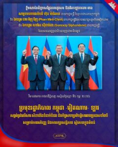 ប្រមុខរដ្ឋាភិបាល កម្ពុជា -វៀតណាម- ឡាវ សង្កត់ធ្ងន់លើសារៈសំខាន់នៃទំនាក់ទំនង និងកិច្ចសហប្រតិបត្តិការរវាងប្រទេសទាំងបី សម្រាប់ការអភិវឌ្ឍ និងការរក្សាសន្តិភាព ស្ថិរភាពក្នុងតំបន់ នារសៀលថ្ងៃទី០៦ ខែកុម្ភៈ ឆ្នាំ២០២៦, សម្តេចមហាបវរធិបតី ហ៊ុន ម៉ាណែត នាយករដ្ឋមន្រ្តី នៃព្រះរាជាណាចក្រកម្ពុជា បានអញ្ជើញដឹកនាំកិច្ចប្រជុំនាយករដ្ឋមន្ត្រីបីប្រទេស (កម្ពុជា-ឡាវ-វៀតណាម) ដោយមានការចូលរួមពី ឯកឧត្តម ផាម មិញជិញ នាយករដ្ឋមន្ត្រី នៃសាធារណរដ្ឋសង្គមនិយមវៀតណាម និងឯកឧត្តម សនសៃ ស៊ីផាន់ដន នាយករដ្ឋមន្ត្រី នៃសាធារណរដ្ឋប្រជាធិបតេយ្យប្រជាមានិតឡាវ នៅវិមានសាមគ្គីភាព ក្នុងឱកាសដែលឯកឧត្តមនាយករដ្ឋមន្ត្រីវៀតណាម និងឯកឧត្តមនាយករដ្ឋមន្ត្រីឡាវ បានចូលរួមកិច្ចប្រជុំរវាងថ្នាក់ដឹកនាំគណបក្សប្រជាជនកម្ពុជា, ថ្នាក់ដឹកនាំគណបក្សកុម្មុយនីស្តវៀតណាម និងថ្នាក់ដឹកនាំគណបក្សប្រជាជនបដិវត្តន៍ឡាវ នៅរាជធានីភ្នំពេញ ព្រះរាជាណាចក្រកម្ពុជា ពីថ្ងៃទី៦ដល់ថ្ងៃទី៧ ខែកុម្ភៈ ឆ្នាំ២០២៦។ ក្នុងឱកាសនៃកិច្ចប្រជុំនេះ សម្តេចបវរធិបតីបានវាយតម្លៃខ្ពស់ចំពោះការប្រាស្រ័យទាក់ទងគ្រប់កម្រិត និងកិច្ចសហប្រតិបត្តិការប្រកបដោយផ្លែផ្ការវាងប្រទេសទាំងបី។ សម្តេចបវរធិបតីបានកត់សម្គាល់ពីវឌ្ឍនភាពនៃទំនាក់ទំនងសេដ្ឋកិច្ច និងពាណិជ្ជកម្មរវាងប្រទេសទាំងបី នាពេលកន្លងមក និងដាក់ចេញនូវគំនិតផ្តួចផ្តើមមួយចំនួន ដើម្បីបន្តលើកកម្ពស់កិច្ចសហប្រតិបត្តិការពាណិជ្ជកម្មបន្ថែមទៀត ដើម្បីឱ្យសម្រេចបាននូវទំហំពាណិជ្ជកម្ម៧០០លានដុល្លារអាមេរិក នៅឆ្នាំ២០៣០ ជាមួយប្រទេសឡាវ និងទំហំពាណិជ្ជកម្ម២០ពាន់លានដុល្លារអាមេរិក ជាមួយប្រទេសវៀតណាម នាពេលខាងមុខ។ ទន្ទឹមនេះ សម្តេចបវរធិបតីបានជំរុញប្រទេសទាំងបីបន្តការផ្លាស់ប្តូររវាងប្រជាជននិងប្រជាជន និងការតភ្ជាប់កាន់តែទូលំទូលាយ តាមរយៈហេដ្ឋារចនាសម្ព័ន្ធ ការដឹកជញ្ជូន វប្បធម៌ ទេសចរណ៍ ថាមពលអគ្គីសនី ។ល។ សម្តេចបវរធិបតីក៏បានជំរុញក្រុមការងារបច្ចេកទេសពន្លឿនការកំណត់ទីតាំងតភ្ជាប់ផ្លូវល្បឿនលឿនភ្នំពេញ-បាវិត និងផ្លូវល្បឿនលឿនហូជីមិញ-ម៉ុកបាយ។ ប្រមុខរដ្ឋាភិបាលទាំងបី បានសង្កត់ធ្ងន់លើសារៈសំខាន់នៃទំនាក់ទំនង និងកិច្ចសហប្រតិបត្តិការរវាងប្រទេសទាំងបី សម្រាប់ការអភិវឌ្ឍ ក៏ដូចជាការរក្សាសន្តិភាព និងស្ថិរភាពក្នុងតំបន់។ ប្រមុខរដ្ឋាភិបាលទាំងបីបានបន្តជំរុញកិច្ចសហប្រតិបត្តិការនយោបាយ-ការទូត, ការផ្លាស់ប្តូរព័ត៌មានក្នុងយន្តការការបរទេស, ការគាំទ្រគ្នាទៅវិញទៅមកក្នុងក្របខណ្ឌតំបន់ និងអន្តរជាតិ និងការផ្សារភ្ជាប់រវាងអ្នកដឹកនាំជំនាន់ក្រោយ។ កិច្ចប្រជុំក៏បន្តជំរុញកិច្ចសហប្រតិបត្តិការការពារជ