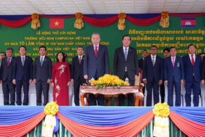សម្ដេចតេជោ ហ៊ុន សែន និង ឯកឧត្តម តូ ឡឹម (To Lam) អញ្ជើញជាអធិបតីក្នុងពិធី “បញ្ចុះបឋមសិលាសាងសង់សាលាមិត្តភាព កម្ពុជា-វៀតណាម” នាល្ងាចថ្ងៃទី៦ ខែកុម្ភៈ ឆ្នាំ២០២៦ សម្ដេចអគ្គមហាសេនាបតីតេជោ ហ៊ុន សែន ប្រធានព្រឹទ្ធសភា នៃព្រះរាជាណាចក្រកម្ពុជា និងឯកឧត្តម តូ ឡឹម អគ្គលេខាធិការនៃគណៈកម្មាធិការមជ្ឈិមបក្សកុម្មុយនីស្តវៀតណាម បានអញ្ជើញជាអធិបតីតីដ៏ខ្ពង់ខ្ពស់ក្នុងពិធី “បញ្ចុះបឋមសិលាសាងសង់សាលាមិត្តភាពកម្ពុជា-វៀតណាម” ស្ថិតក្នុងខណ្ឌដង្កោ រាជធានីភ្នំពេញ។ យោងតាមរបាយការណ៍ ឯកឧត្តម ឃួង ស្រេង អភិបាលរាជធានីភ្នំពេញបានឱ្យដឹងថាសាលារៀន នេះសាងសង់លើផ្ទៃដីអតីតសាលាបឋមសិក្សា និងអនុវិទ្យាល័យ សម្តេចតេជោ ហ៊ុន សែន ដង្កោ ដែលរួមមានអគារសិក្សា ៣ ជាន់ ចំនួន ១១ ខ្នង (ស្មើនឹង ១៤៧ បន្ទប់), អគាររដ្ឋបាល ២ ខ្នង, អាហារដ្ឋាន ២ កន្លែង និងសម្ភារគាំទ្រទំនើបៗជាច្រើនទៀត ដោយប្រើពេល ១២ ខែ ដើម្បីប្រែក្លាយសាលានេះឱ្យទៅជាគ្រឹះស្ថានសិក្សាស្តង់ដារ ដែលអាចទទួលសិស្សានុសិស្សបានកាន់តែច្រើន។ សាលារៀនននេះ មានប្រវត្តិផ្សារភ្ជាប់នឹងកងទ័ពស្ម័គ្រចិត្តវៀតណាមក្រោយថ្ងៃរំដោះ ៧ មករា ១៩៧៩ ដើម្បីអភិវឌ្ឍវិស័យអប់រំនៅកម្ពុជា និង ជាជំនួយដ៏ថ្លៃថ្លារបស់គណបក្ស រដ្ឋាភិបាល និងប្រជាជនវៀតណាមធ្វើឡើងក្នុងគោលបំណងអបអរសាទរ ខួបលើកទី៦០ នៃទំនាក់ទំនងការទូតកម្ពុជា-វៀតណាម និងជាការបង្ហាញពីស្មារតី “តភ្ជាប់យុវជន តភ្ជាប់ជំនាន់ និងតភ្ជាប់ភាពជាអ្នកដឹកនាំ” នៃប្រទេសទាំងពីរ ។ ឯកឧត្តម ឃួង ស្រេង បានបញ្ជាក់បន្ថែមថា សមិទ្ធផលថ្មីនេះមិនត្រឹមតែជួយលើកកម្ពស់គុណភាពអប់រំប៉ុណ្ណោះទេ ប៉ុន្តែគឺជាសក្ខីភាពនៃចំណងមិត្តភាពដែកថែប និងកិច្ចសហប្រតិបត្តិការយូរអង្វែងរវាងប្រជាជាតិទាំងពីរ កម្ពុជា-វៀតណាម។ បន្ទាប់មកថ្នាក់ដឹកនាំទាំងពីរ សម្ដេចតេជោ ហ៊ុន សែន និងឯកឧត្តម តូច ឡឹម បានអញ្ជើញជានិមិត្តរូបក្នុងពិធីបញ្ចុះបឋមសិលាសាងសង់សាលាមិត្តភាព កម្ពុជា-វៀតណាម” និងថតរូបអនុស្សាវរីយ៍រួមគ្នាជាមួយគណៈប្រតិភូ ថ្នាក់ដឹកនាំសាលា លោកគ្រូ អ្នកគ្រូ និងសិស្សានុសិស្ស មុននឹងបញ្ចប់កម្មវិធីផងដែរ ៕ 🌐 ផេកមើលច្រើនទៀត📱Prum Meanchey TV online📱កាសែតព្រហ្មមានជ័យ