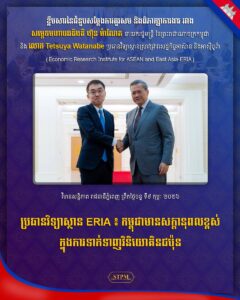 ប្រធានវិទ្យាស្ថាន ERIA៖ កម្ពុជាមានសក្ដានុពលខ្ពស់ក្នុងការទាក់ទាញវិនិយោគិនជប៉ុន នាព្រឹកថ្ងៃទី៩ ខែកុម្ភៈ ឆ្នាំ២០២៦ សម្ដេចមហាបវរធិបតី ហ៊ុន ម៉ាណែត នាយករដ្ឋមន្ត្រី នៃព្រះរាជាណាចក្រកម្ពុជា បានអនុញ្ញាតឱ្យលោកសាស្ត្រាចារ្យ តេតស៊ូយ៉ា វ៉ាតាណាបេ (Tetsuya WATANABE) ប្រធានវិទ្យាស្ថានស្រាវជ្រាវសេដ្ឋកិច្ចសម្រាប់កិច្ចការអាស៊ាន និងអាស៊ីបូព៌ា (ERIA) ចូលជួបសម្ដែងការគួរសម និងពិភាក្សាការងារ នៅវិមានសន្ដិភាព។ ក្នុងឱកាសនៃជំនួបនេះ លោកសាស្ត្រាចារ្យប្រធានវិទ្យាស្ថាន ERIA បានថ្លែងអំណរគុណយ៉ាងជ្រាលជ្រៅជូនចំពោះសម្ដេចធិបតី ដែលបានចំណាយពេលវេលាដ៏មមាញឹក អនុញ្ញាតឱ្យរូបលោក និងគណៈប្រតិភូបានចូលជួបសម្ដែងការគួរសម។ លោកសាស្ត្រាចារ្យ បានគោរពរាយការណ៍ជូនសម្ដេចធិបតី អំពីលទ្ធផលនៃការស្រាវជ្រាវស្ដីពី «ការបង្កើតតំបន់សេដ្ឋកិច្ចពិសេសបៃតងកម្ពុជា-ជប៉ុន (C-J GSEZ)»។ លោកសាស្ត្រាចារ្យ ក៏បានលើកឡើងពីសក្ដានុពល និងឱកាសរបស់កម្ពុជាក្នុងការទាក់ទាញវិនិយោគិនជប៉ុន ជាពិសេសលទ្ធភាពរបស់កម្ពុជាក្នុងការប្រែក្លាយខ្លួនទៅជា «មូលដ្ឋានផលិតកម្មឧស្សាហកម្មថ្មី» ដែលការណ៍នេះមិនត្រឹមតែរួមចំណែកដល់កំណើនសេដ្ឋកិច្ចរបស់កម្ពុជាប៉ុណ្ណោះទេ ប៉ុន្តែថែមទាំងរួមចំណែកដល់ខ្សែច្រវាក់ផលិតកម្មឧស្សាហកម្មតំបន់ និង សកល។ បន្ថែមលើសនេះ, លោកសាស្ត្រាចារ្យ ក៏បានគោរពជម្រាបជូនសម្ដេចធិបតីអំពីចំណាប់អារម្មណ៍របស់វិនិយោគិនជប៉ុនក្នុងការវិនិយោគបន្ថែម នៅកម្ពុជា ក៏ដូចជាការរៀបចំនូវវេទិកាធុរកិច្ចកម្ពុជា-ជប៉ុន នាពេលខាងមុខ ដើម្បីចូលរួមចំណែកក្នុងការទាក់ទាញវិនិយោគិនជប៉ុនមកកាន់កម្ពុជាឱ្យកាន់តែច្រើន។ លោកសាស្ត្រាចារ្យ បានជម្រាបជូនសម្តេចធិបតីថា បច្ចុប្បន្ននេះ បណ្ដាក្រុមហ៊ុនជប៉ុនកំពុងស្វែងរកឱកាសក្នុងការផ្លាស់ប្ដូរទីតាំងផលិតកម្ម (Re-location)នៅក្នុងតំបន់ ហើយបាននិងកំពុងសម្លឹងមើលឱកាសក្នុងការវិនិយោគថ្មីៗនៅកម្ពុជាបន្ថែមទៀត។ ជាការឆ្លើយតប សម្ដេចធិបតីបានសម្ដែងនូវការស្វាគមន៍ និងសេចក្ដីរីករាយដែលបានជួបលោកសាស្ត្រាចារ្យ និងគណៈប្រតិភូជាថ្មីម្ដងទៀត ព្រមទាំងបានវាយតម្លៃខ្ពស់ចំពោះលទ្ធផលនៃការសិក្សាសមិទ្ធិលទ្ធភាពរបស់វិទ្យាស្ថាន ERIA។ ជាមួយគ្នានោះ, សម្ដេចធិបតីបានសង្កត់ធ្ងន់ថា រាជរដ្ឋាភិបាលកម្ពុជាកំពុងផ្ដោតការយកចិត្តទុកដាក់លើការបង្កើតតំបន់សេដ្ឋកិច្ចពិសេសបៃតង (Green SEZ) និងការបង្កើតតំបន់សេដ្ឋកិច្ចពិសេសសម្រាប់ប្រទេសជាក់លាក់ និង ឧស្សាហកម្មជាក់លាក់ ជាដើម។ ក្នុងន័យនេះ សម្ដេចធិបតីបានលើកទឹកចិត្តឱ្យលោកសាស្ត្រាចារ្យបន្តផ្សារភ្ជាប់ទំនាក់ទំនង និងពិភាក្សាលម្អិតបន្ថែមទៀតជាមួយក្រសួង-ស្ថាប័នពាក់ព័ន្ធរបស់រាជរដ្ឋាភិបាល ជាពិសេសក្រុមប្រ