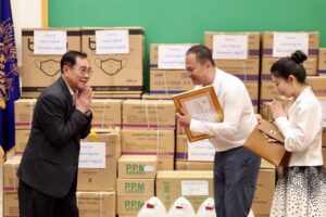 ទទួលអំណោយពីលោក ជា ច័ន្ទដេត និងលោកស្រី ឆ ព័ណ្ណរង្សី នៅព្រឹកថ្ងៃទី២២ ខែសីហា ឆ្នាំ២០២៥ នេះ ឯកឧត្តម អ៊ូ វណ្ណា អនុរដ្ឋលេខាធិការក្រសួងមហាផ្ទៃ និងជានាយករងខុទ្ទកាល័យប្រចាំការ ជាតំណាងដ៏ខ្ពង់ខ្ពស់ឯកឧត្តមអភិសន្តិបណ្ឌិត ស សុខា ឧបនាយករដ្ឋមន្ត្រី រដ្ឋមន្ត្រីក្រសួងមហាផ្ទៃ បានទទួលអំណោយពីលោក ជា ច័ន្ទដេត និងលោកស្រី ឆ ព័ណ្ណរង្សី សម្រាប់ជួយឧបត្ថម្ភដល់សមរភូមិមុខ និងជនភៀសសឹក។ អំណោយរបស់លោក ជា ច័ន្ទដេត និងលោកស្រី ឆ ព័ណ្ណរង្សី ប្រគល់ជូនក្រសួងមហាផ្ទៃ រួមមាន៖ សេរ៉ូម NSS ចំនួន ២០កេស សេរ៉ូម D5% ចំនួន ២០កេស Betadine ចំណុះ ៥លីត្រ ចំនួន ១០ធុង បង់រុំ ចំនួន ១០០ដុំ កំប្រេះ ចំនួន ១០ដុំ អាល់កុល ចំនួន ៤កាន ម៉ាស ចំនួន ៥កេស ស្រោមដៃ ចំនួន ៥កេស និងទឹកបរិសុទ្ធ ចំនួន ១០០កេស។ សូមថ្លែងអំណរគុណយ៉ាងជ្រាលជ្រៅនិងសូមគោរពជូនពរដល់លោក និងលោកស្រី ព្រមទាំងក្រុមគ្រួសារទាំងអស់ សូមបានជួបប្រទះតែនឹងពុទ្ធពរទាំងបួនប្រការគឺ អាយុ វណ្ណៈ សុខៈ ពលៈ កុំបីឃ្លៀងឃ្លាតឡើយ៕ 🌐H.E. Abhisantibindit Sar Sokha, Deputy Prime Minister, Minister of Interior 🌐Sar Sokha 🌐Join Telegram 🌐YouTube 🌐TikTok #សសុខា #SarSokha #កម្ពុជា #Cambodia