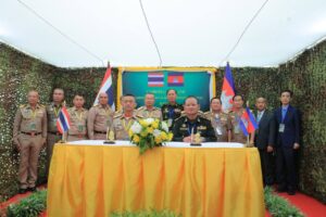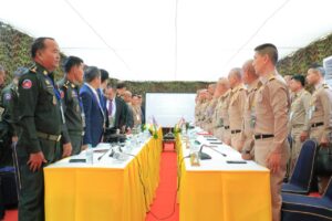 The Cambodian delegation was led by Lieutenant General Ek Sam-Aun, the Commander of Military Region 5 and Co-Chairman of the RBC Extraordinary Meeting. The Thai delegation was led by Vice Admiral Aphichat Sapprasert, the Commander of the Border Defence Command of Chanthaburi and Trat Province and Co-Chairman of the RBC Extraordinary Meeting. The meeting was commenced at 10:30 AM and successfully concluded at 11:20 AM on the morning of August 25, 2025. During this extraordinary meeting, both the Cambodian and Thai sides agreed to maintain regular communication between their respective army areas and military regions, and units along the Cambodia-Thailand border. They also pledged to resolve all issues peacefully and to avoid any conflicts. Both sides also emphasized the importance of further strengthening relations at all levels in order to build trust and promote good neighborliness. Through this communication, both sides highlighted the positive developments and progress achieved to date, aiming to promote cooperation in all sectors and thereby ensure a return to normalcy As stated above, please national and international journalists be informed August 25, 2025