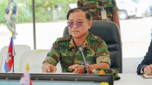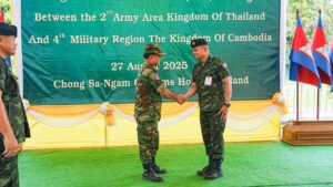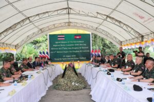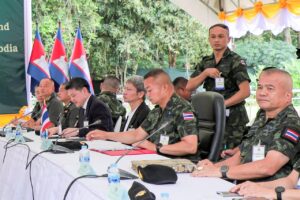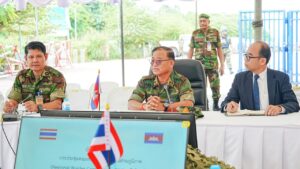 អ្នកនាំពាក្យក្រសួងការពារជាតិ នៃព្រះរាជាណាចក្រកម្ពុជា៖ នៅថ្ងៃទី២៧ ខែសីហា ឆ្នាំ២០២៥ កិច្ចប្រជុំវិសាមញ្ញរបស់គណៈកម្មាធិការព្រំដែនថ្នាក់យោធភូមិភាគ កម្ពុជា-ថៃ (RBC) ប្រព្រឹត្តនៅព្រឹកថ្ងៃនេះ នៅច្រកព្រំដែនអន្តរជាតិជាំ-សាង៉ាំ ខេត្តឧត្តរមានជ័យ។ គណៈប្រតិភូកម្ពុជាដឹកនាំដោយ ឧត្តមសេនីយ៍ឯក ពៅ ហេង មេបញ្ជាការយោធភូមិភាគទី៤ និងជា សហប្រធាននៃកិច្ចប្រជុំវិសាមញ្ញរបស់គណៈកម្មាធិការព្រំដែនថ្នាក់យោធភូមិភាគ(RBC)។ គណៈប្រតិភូ ថៃដឹកនាំដោយ ឧត្តមសេនីយ៍ឯក ប៊ុនស៊ីន ផាត់ឃ្លាំង មេបញ្ជាការកងទ័ពភូមិភាគទី២ និងជាសហប្រធាន នៃកិច្ចប្រជុំវិសាមញ្ញរបស់គណៈកម្មាធិការព្រំដែនថ្នាក់យោធភូមិភាគ(RBC)។ កម្ពុជាសង្ឃឹមយ៉ាងមុតមាំថា កិច្ចប្រជុំនេះនឹងទទួលបានលទ្ធផលជាវិជ្ជមានបន្ថែមទៀត ដែលអនុញ្ញាត ឱ្យភាគីទាំងពីរអាចជំរុញការអនុវត្តបទឈប់បាញ់ឱ្យមានប្រសិទ្ធភាពពេញលេញ នឹងនាំមកនូវសន្តិភាព ស្ថិរភាព និងប្រក្រតីភាពវិលត្រឡប់មកវិញបានឆាប់រហ័ស។ Spokesperson for the Ministry of National Defense of the Kingdom of Cambodia: On the morning of August 27, 2025, the extraordinary meeting of RBC commenced, at the International Border Checkpoint Chaom-SaNgam, Oddar Meanchey Province. The Cambodia delegation is led by Lieutenant General Pov Heng, the commander of the Military Region 4. The Thai delegation is led by Lieutenant General Boonsin Padklang, the Commander of the Military Region 2.
