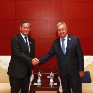សម្ដេចមហាបវរធិបតី ហ៊ុន ម៉ាណែត ជួបសម្តែងការគួរសម និង ពិភាក្សាការងារជាមួយ ឯកឧត្តម António Guterres អគ្គលេខាធិការអង្គការសហប្រជាជាតិ។ ឯកឧត្តមអគ្គលេខាធិការ បានវាយតម្លៃខ្ពស់ចំពោះកម្ពុជា ដែលបានចូលរួមយ៉ាងសកម្មក្នុងនាមជាសមាជិកនៃអង្គការពិភពលោក ក្នុងកិច្ចការជាច្រើន។ ពាក់ព័ន្ធនឹងជម្លោះព្រំដែនរវាងកម្ពុជានិងថៃ ឯកឧត្តមអគ្គលេខាធិការ បានបញ្ជាក់ថា ឯកឧត្តមផ្ទាល់ បាននិងកំពុងតាមដានយ៉ាងយកចិត្តទុកដាក់លើករណីនេះ។ ឯកឧត្តម បានសម្តែងការស្វាគមន៍ចំពោះបទឈប់បាញ់រវាងកងទ័ពកម្ពុជានិងថៃ និងបន្តជំរុញឱ្យស្ថានការអាចវិលត្រលប់ទៅរកប្រក្រតីភាពនាពេលឆាប់ៗខាងមុខនៃទំនាក់ទំនងរវាងប្រទេសទាំងពីរ។ ឯកឧត្តមអគ្គលេខាធិការ បានទទួលយកសំណើ ក្នុងការជំរុញឱ្យភាគីទាំងពីរជៀសវាងការប្រើប្រាស់កម្លាំងយោធាដើម្បីដោះស្រាយបញ្ហាព្រំដែនដែលមិនទាន់ដាច់ស្រេច ជាពិសេសនៅតំបន់ដែលមានប្រជាពលរដ្ឋរស់នៅ។ សូមឱ្យដោះស្រាយបញ្ហាព្រំដែន ដោយសន្តិវិធី តាមរយៈការប្រើប្រាស់យន្តការព្រំដែនដែលមានស្រាប់ (គឺគណៈកម្មការចម្រុះព្រំដែនកម្ពុជា-ថៃ JBC) ដោយផ្អែកលើមូលដ្ឋាននៃកិច្ចព្រមព្រៀងរវាងកម្ពុជានិងថៃដែលមានជាធរមាន សន្ធិសញ្ញាពាក់ព័ន្ធ និងច្បាប់អន្តរជាតិ។ សាធារណរដ្ឋប្រជាមានិតចិន ថ្ងៃចន្ទ ទី១ សីហា ២០២៥ 🌐 Hun Manet 🌐 Samdech Thipadei Hun Manet, Prime Minister of Cambodia 🌐 Telegram 🌐 Tiktok 🌐 YouTube 🌐 Instagram