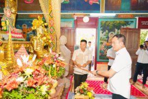 ឧត្តមសេនីយ៍ឯក រ័ត្ន ស្រ៊ាង នាំទេយ្យទានប្រគេនព្រះសង្ឃក្នុងឱកាសវេនកាន់បិណ្ឌ ចំនួន០២វត្ត ក្នុងសង្កាត់ព្រែកកំពឹស ខណ្ឌដង្កោ! នៅថ្ងៃទី១១ ខែកញ្ញា ឆ្នាំ២០២៥ ឯកឧត្តម ឧត្តមសេនីយ៍ឯក រ័ត្ន ស្រ៊ាង មេបញ្ជាការរង កងរាជអាវុធហត្ថលើផ្ទៃប្រទេស មេបញ្ជាការ កងរាជអាវុធហត្ថរាជធានីភ្នំពេញ និងជាប្រធានក្រុមការងាររាជរដ្ឋាភិបាលចុះជួយមូលដ្ឋានខណ្ឌដង្កោ បានដឹកនាំក្រុមការងារ និងមានការចូលរួមពីលោក អ៊ុយ សុន អនុប្រធានក្រុមការងារ និងលោក លោកស្រី ជាក្រុមការងារភូមិ-សង្កាត់ ព្រមទាំងយុវជនសង្កាត់ បាននាំយកបច្ច័យ និងទេយ្យវត្ថុទៅប្រគេនព្រះសង្ឃក្នុងឱកាសវេនកាន់បិណ្ឌរបស់ពុទ្ធបរិស័ទ្ធ នៅវត្តចំនួន០២វត្ត ក្នុងសង្កាត់ព្រែកកំពឹសគឺ វត្តព្រែកថ្លឹង និងវត្តកែវមុនី (ហៅវត្តគោករលួស) ដើម្បីចូលរួមក្នុងពិធីបុណ្យកាន់បិណ្ឌវេនទី៤ និងឧទ្ទិសកុសលជូនដល់បុព្វការីជន ជីដូនជីតា ញាតិកាប្រាំពីរសន្តាន ព្រមទាំងឧទ្ទិសកុសលជូនដល់វិញ្ញាណក្ខន្ធ វរៈកងទ័ពពលី លើសមរភូមិ ក្នុងពេលបំពេញបេសកកម្ម ការរពារបូរណភាពទឹកដី និងនាយទាហាន នាយទាហានរង ពលទាហាននៃ កងរាជអាវុធហត្ថ រាជធានីភ្នំពេញ ដែលបានពលី មរណៈក្នុងរយៈកាលកន្លងមក។