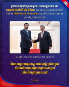 តំណាងអង្គការយូណេស្កូ ចប់អាណត្តិ ប្រចាំកម្ពុជា នឹងចែករំលែកនូវឧត្តមានុវត្តន៍របស់កម្ពុជា ទៅកាន់បណ្ដាប្រទេសនានា នារសៀល ថ្ងៃទី១៩ ខែកញ្ញា ឆ្នាំ២០២៥, សម្តេចមហាបវរធិបតី ហ៊ុន ម៉ាណែត នាយករដ្ឋមន្ត្រីនៃព្រះរាជាណាចក្រកម្ពុជា បានអនុញ្ញាតឱ្យ លោក Sardar Umar Alam ប្រធានតំណាងអង្គការយូណេស្កូប្រចាំនៅព្រះរាជាណាចក្រកម្ពុជា ចប់អាណត្តិ ចូលជួបសម្តែងការគួរសម និងជម្រាបលា នៅវិមានសន្ដិភាព។ ក្នុងឱកាសនៃជំនួប, លោកប្រធាន បានថ្លែងអំណរគុណយ៉ាងជ្រាលជ្រៅ ជូនចំពោះសម្ដេចមហាបវរធិបតី ដែលបានអនុញ្ញាតឱ្យលោក និងសហការី បានជួបសម្ដែងការគួរសម និងជម្រាបលា ក្នុងឱកាសដែលរូបលោកបានបញ្ចប់បេសកកម្មការងារនៅកម្ពុជា។ លោកប្រធាន បានគោរពថ្លែងអំណរគុណយ៉ាងជ្រាលជ្រៅចំពោះរាជរដ្ឋាភិបាល ក៏ដូចជាក្រសួង-ស្ថាប័នពាក់ព័ន្ធ ដែលបានផ្ដល់ការគាំទ្រ និងកិច្ចសហប្រតិបត្តិការយ៉ាងល្អ ជាមួយនឹងអង្គការយូណេស្កូ នាពេលកន្លងមក។ លោកបានបញ្ជាក់ថា អង្គការយូណេស្កូពិតជាមានមោទនភាពនៅក្នុងការបំពេញការងារក្នុងភាពជាដៃគូជាមួយនឹងកម្ពុជា។ ជាមួយគ្នានេះដែរ, លោកប្រធានក៏បានគោរពជម្រាបជូនសម្ដេចបវរធិបតី អំពីលទ្ធផលប្រកបដោយផ្លែផ្កានៃកិច្ចសហប្រតិបត្តិការរវាងអង្គការយូណេស្កូ និងកម្ពុជា ដោយគូសបញ្ជាក់ផងដែរថា ទំនាក់ទំនងរវាងអង្គការយូណេស្កូ និងកម្ពុជា គឺជាទំនាក់ទំនងភាពជាដៃគូដ៏ពិសេសមួយ។ លោកប្រធានបានជម្រាបសម្តេចបវរធិបតីថា រូបលោកនឹងចែករំលែកនូវឧត្តមានុវត្តន៍របស់កម្ពុជាដែលពាក់ព័ន្ធនឹងវិស័យអប់រំ និងវប្បធម៌ ទៅកាន់បណ្ដាប្រទេសនានា។ បន្ថែមពីលើនេះ, លោកប្រធានតំណាងអង្គការយូណេស្កូប្រចាំកម្ពុជា ក៏បានគោរពជម្រាបជូនសម្ដេចបវរធិបតីអំពីគម្រោងនៃកិច្ចសហប្រតិបត្តិការរវាងអង្គការយូណេស្កូ និងកម្ពុជា ដែលកំពុងអនុវត្ត ដែលពាក់ព័ន្ធទៅនឹងវិស័យអប់រំ វប្បធម៌ បរិស្ថាន និងធនធានទឹក និងបានសង្កត់ធ្ងន់អំពីការត្រៀមខ្លួនរួចជាស្រេចរបស់អង្គការយូណេស្កូ ក្នុងបន្តការគាំទ្រផ្នែកជំនួយបច្ចេកទេសដល់កម្ពុជា ដើម្បីចូលរួមចំណែកដល់ការអភិវឌ្ឍសង្គម-សេដ្ឋកិច្ច។ ជាការឆ្លើយតប, សម្ដេចបវរធិបតីបានសម្ដែងនូវការពេញចិត្ត និងថ្លែងអំណរគុណចំពោះកិច្ចសហប្រតិបត្តិការក្នុងភាពជាដៃគូរបស់អង្គការយូណេស្កូ ដែលបានគាំទ្រគម្រោងអភិវឌ្ឍន៍ជាច្រើន លើវិស័យអប់រំ វប្បធម៌ និងបរិស្ថាន នៅកម្ពុជា។ ជាងនេះទៅទៀត, សម្ដេចបវរធិបតីបានវាយតម្លៃខ្ពស់ និងពេញចិត្តចំពោះអត្ថប្រយោជន៍ដែលកម្ពុជាទទួលបានពីការគាំទ្ររបស់អង្គការយូណេស្កូ កន្លងមក ដែលបានចូលរួមដល់ការអភិវឌ្ឍសង្គម-សេដ្ឋកិច្ច នៅកម្ពុជា និងបានបញ្ជាក់ថា រាជរដ្ឋាភិបាលនឹងបន្តកិច្ចសហប្រតិបត្តិការ និងគាំទ្រដល់ភាពជាដៃគូន