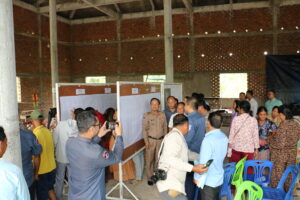 ពិធីបិទផ្សាយជាសាធារណៈនូវឯកសារ នៃការវិនិច្ឆ័យលើការចុះបញ្ជីដីធ្លី ជូនបងប្អូនប្រជាពលរដ្ឋ ក្រោមអធិបតីភាព ឯកឧត្តម ឈឿន ក្រៃយ៉ុង អភិបាលរងខេត្ត តំណាងដ៏ខ្ពង់ខ្ពស់ ឯកឧត្តមអ៊ុំ រាត្រី អភិបាលនៃគណៈអភិបាលខេត្តបន្ទាយមានជ័យ។ ថ្ងៃអង្គារ ៨ កើត ខែអស្សុជឆ្នាំម្សាញ់ សប្តស័ក ពុទ្ធសករាជ ២៥៦៩ ត្រូវនិងថ្ងៃទី៣០ ខែកញ្ញា ឆ្នាំ២០២៥ នៅបរិវេណវត្តគីរីធម្មសាធរក្ខារាម(វត្តភ្នំកៅបី)ឃុំអូរស្រឡៅ ស្រុកម៉ាឡៃ មន្ទីរៀបចំដែនដី នគរូបនីយកម្មខេត្ត រៀបចំពិធីបិទផ្សាយជាសាធារណៈនូវឯកសារនៃការវិនិច្ឆ័យលើការចុះបញ្ជីដីធ្លីជូនបងប្អូនប្រជាពលរដ្ឋ។ពិធីនេះមានការអញ្ជើញចូលរួម លោកមាស តារ៉ាប្រធានមន្ទីររៀបចំដែនដីនគរូបនីយកម្ម សំណង់និង សុរិយាដីខេត្តបន្ទាយមានជ័យ លោកគឹង ស៊ីណាត អភិបាលរងស្រុកម៉ាឡៃ លោក លោកស្រីប្រធាន អនុប្រធានមន្ទីរ អង្គភាព កងកម្លាំងប្រដាប់អាវុធនៅក្នុងស្រុក ព្រមទាំងប្រជាពលរដ្ឋានៅក្នុងឃុំអូរស្រឡៅ។ សូមបញ្ជាក់ការបិទផ្សាយ នេះមានចំនួន ៨ភូមិ លើក្បាលដីសរុបចំនួន ៤១១៥ ក្បាលដីនាពេលនេះ។ ក្នុងឱកាសនេះឯកឧត្តមឈឿន ក្រៃយ៉ុងអភិបាលរងខេត្ត អភិបាលរងស្រុក ប្រធានមន្ទី មានប្រសាសន៍សំណេះសំណាលសួរសុខទុក្ខនិងពន្យល់ណែនាំ អំពីការពិនិត្យនូវឯកសារជូនប្រជាពលរដ្ឋ ពួកគាត់ដែលបានចូលរួមមានការសប្បាយចិត្តរីករាយដោយបានអាជ្ញាធ ប្រធានមន្ទីរ បានរៀបចំធ្វើប្លង់ជូនពួកគាត់។ អត្ថបទដោយអ្នកស្រីមាស ចន្នី រូបភាពដោយលោកលី គង់