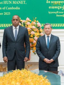 សម្តេចបវរធិបតី ហ៊ុន ម៉ាណែត ចូលរួមជាអធិបតីភាពជាមួយ ឯកឧត្តមបណ្ឌិត Roosevelt Skerrit នាយករដ្ឋមន្ត្រីនៃកុំមិនវែលដូមីនីក ក្នុងពិធីផ្លាស់ប្តូរអនុស្សារណៈនៃការយោគយល់គ្នា ស្តីពីការបង្កើតកិច្ចពិគ្រោះយោបល់ទ្វេភាគី រវាងក្រសួងការបរទេសនៃប្រទេសទាំងពីរ។ រាជធានីភ្នំពេញ ព្រឹកថ្ងៃព្រហស្បតិ៍ ទី៩ តុលា ២០២៥ The Honorable Dr. Roosevelt Skerrit, Prime Minister of the Commonwealth of Dominica, and I witnessed the signing of the Memorandum of Understanding on the Establishment of Bilateral Consultations between the two Ministries of Foreign Affairs. Phnom Penh, Thursday morning, 9 October 2025 #Cambodia #Hunmanet #Peace #៣នាទីពីសង្គមនិងនយោបាយ