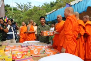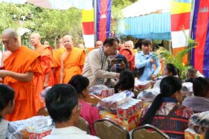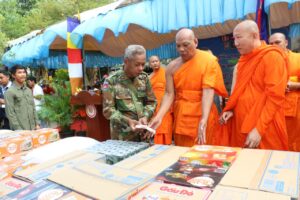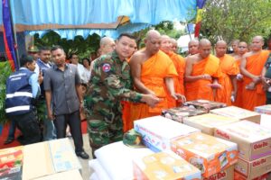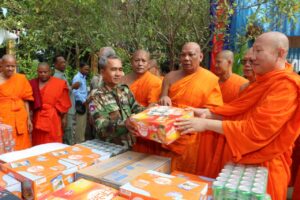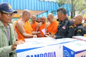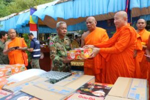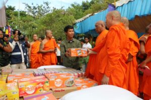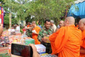 សម្ដេចព្រះសិរីសម្មភិវង្ស ទេព ផាន ព្រះរាជាគណៈត្រី ព្រមទាំងមន្ត្រីសង្ឃ យាង និមន្ត ព្រះទានព្រះអំណាយជូនប្រជាពលរដ្ឋរងគ្រោះភូមិព្រៃចាន់ ភូមិជោគជ័យ ឃុំអូរបីជាន់ ស្រុកអូរជ្រៅ។ ថ្ងៃពុធ១កើត ខែកត្តិក ឆ្នាំម្សាញ់ សប្តស័ក ពុទ្ធសករាជ២៥៦៩ ត្រូវនឹងថ្ងៃទី២២ខែតុលា ឆ្នាំ២០២៥ នៅបរិវេនវត្តពុទ្ធិសីមារាមជោគជ័យ ភូមិជោគជ័យឃុំអូរបីជាន់ ស្រុកអូរជ្រៅ ខេត្តបន្ទាយមានជ័យ។ លោកលី សុវណ្ណារិទ្ធអភិបាលរងខេត្តតំណាងខ្ពង់ខ្ពស់ ឯកឧត្តមអ៊ុំ រាត្រី អភិបាលនៃគណៈអភិបាលខេត្តបន្ទាយមានជ័យអញ្ជើញអមដំណើរ ព្រះសេរីសម្មភិវង្ស ទេព ផាន ព្រះរាជាគណៈថ្នាក់ត្រី សមាជិកថេរសភាព្រះពុទ្ធសាសនានៃព្រះរាជាណាចក្រកម្ពុជា ព្រះបាឡាក់គណរាជធានីភ្នំពេញ ព្រះវិន័យធរគណរាជធានីភ្នំពេញនិងជាព្រះអនុគណខណ្ឌពោធិសែនជ័យយាងនិមន្តចែកអំណោយជូនប្រជាពលរដ្ឋតែរងគ្រោះពីការរំលោភបំពាន ព័ទ្ធលួសបន្លាដាក់កង់ឡានពីរយោធាថៃមានចំនួនពីរភូមិភូមិជោគជ័យ ភូមិព្រៃចាន់១០០០គ្រួសារក្នុង១គ្រួសារ អង្ករ២០គីឡូក្រាម ទឹកសុីអុីវ១យួរ ១ទឹកត្រីមួយយួរ មី១កេស ត្រីខមួយយួរ ថវិការ៣០០០០៛ បីមុីនរៀល។ អត្ថបទមាស ចន្នី រូបភាពលោកលី គង់