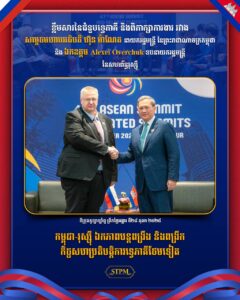 កម្ពុជា-រុស្ស៊ី ឯកភាពបន្តពង្រឹងនិងពង្រីក កិច្ចសហប្រតិបត្តិការទ្វេភាគីថែមទៀត នាព្រឹក ថ្ងៃទី២៨ ខែតុលា ឆ្នាំ២០២៥, សម្តេចមហាបវរធិបតី ហ៊ុន ម៉ាណែត នាយករដ្ឋមន្រ្តី នៃព្រះរាជាណាចក្រកម្ពុជា បានអនុញ្ញាតឱ្យឯកឧត្តម Alexei Overchuk, ឧបនាយករដ្ឋមន្ត្រី នៃសហព័ន្ធរុស្ស៊ី ចូលជួបសម្ដែងការគួរសម និងពិភាក្សាការងារ ក្នុងឱកាសចូលរួមកិច្ចប្រជុំកំពូលអាស៊ាន លើកទី៤៧ និងកិច្ចប្រជុំកំពូលពាក់ព័ន្ធ នៅទីក្រុងគូឡាឡាំពួ ប្រទេសម៉ាឡេស៊ី នៅថ្ងៃទី២៦-២៨ ខែតុលា ឆ្នាំ២០២៥។ ក្នុងឱកាសនៃជំនួប, ឯកឧត្តមឧបនាយករដ្ឋមន្ត្រីបានជម្រាបជូនសម្ដេចបវរធិបតីថា កម្ពុជាជាមិត្តយូរអង្វែងរបស់រុស្ស៊ី ហើយប្រទេសទាំងពីរមានទំនាក់ទំនងជាប្រពៃណី។ ឯកឧត្តមឧបនាយករដ្ឋមន្ត្រីបានគូសបញ្ជាក់ពីបំណងរបស់រុស្ស៊ី ក្នុងបន្តពង្រឹង និងពង្រីកកិច្ចសហប្រតិបត្តិការទ្វេភាគីឱ្យកាន់តែខ្លាំងក្លាថែមទៀត ដោយផ្តោតជាសំខាន់លើវិស័យអាទិភាពមួយចំនួនដូចជា៖ ពាណិជ្ជកម្ម សេដ្ឋកិច្ច វត្ថុធាតុដើមសម្រាប់ វាយនភណ្ឌ ការផលិតវ៉ាក់សាំង កសិកម្ម សន្តិសុខថាមពល ការដឹកជញ្ជូន និងភស្តុភារកម្ម។ ជាការឆ្លើយតប សម្ដេចបវរធិបតីបានឯកភាពចំពោះការលើកឡើងរបស់ឯកឧត្តមឧបនាយករដ្ឋមន្ត្រី អំពីមិត្តភាពយូរអង្វែង និងទំនាក់ទំនងជាប្រពៃណីរវាងកម្ពុជានិងរុស្ស៊ី។ សម្ដេចបវរធិបតីបានគូសបញ្ជាក់បន្ថែមថា ឆ្នាំ២០២៦ ខាងមុខនេះ គឺជាខួបលើកទី៧០ នៃទំនាក់ទំនងការទូតរវាងប្រទេសទាំងពីរ។ កម្ពុជា នឹង ធ្វើការជាមួយរុស្ស៊ី ក្នុងការបន្តពង្រឹង និងពង្រីកចំណងមិត្តភាព និងកិច្ចសហប្រតិបត្តិការរវាងប្រទេសទាំងពីរ ឱ្យកាន់តែខ្លាំងក្លាថែមទៀត។ សម្ដេចបវរធិបតីក៏បានថ្លែងអំណរគុណចំពោះរុស្ស៊ីដែលបានគាំទ្រ និងផ្ដល់ជំនួយដល់កម្ពុជា នាពេលកន្លងមក។ សម្ដេចបវរធិបតីបានស្វាមគន៍ចំណាប់អារម្មណ៍ និងបំណងរបស់ភាគីរុស្ស៊ី ក្នុងការពង្រីកកិច្ចសហប្រតិបត្តិការជាមួយកម្ពុជា លើវិស័យសំខាន់ៗខាងលើ និងបានលើកទឹកចិត្តភាគីរុស្ស៊ី ឱ្យបញ្ជូនគណៈប្រតិភូជំនាញពីវិស័យពាក់ព័ន្ធមកបំពេញទស្សនកិច្ចនៅកម្ពុជា ដើម្បីពិភាក្សា និងផ្សារភ្ជាប់ទំនាក់ទំនងជាមួយក្រសួង-ស្ថាប័ននានា ក៏ដូចជាវិស័យឯកជនរបស់កម្ពុជា ដើម្បីឱ្យចេញជាលទ្ធផលជាក់ស្តែង៕ 🌐 Hun Manet 🌐 Samdech Thipadei Hun Manet, Prime Minister of Cambodia
