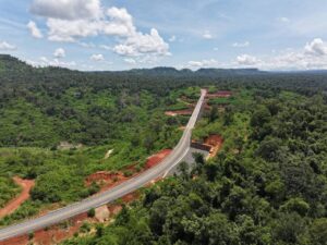 ផ្លូវជាតិលេខ១០ ជាប្រព័ន្ធហេដ្ឋារចនាសម្ព័ន្ធមួយខ្សែដ៏មានសារសំខាន់ តភ្ជាប់ពីស្រុកសំឡូត ខេត្តបាត់ដំបង ឆ្លងកាត់ខេត្តពោធិ៍សាត់ ក្នុងភូមិសាស្ត្រឃុំប្រមោយ និងឃុំអូរសោម ស្រុកវាលវែង រហូតដល់ក្រុងខេមរភូមិន្ទ ខេត្តកោះកុង មាន ប្រវែងជាង ១៩៧គីឡូម៉ែត្រ។ ផ្លូវជាតិមួយខ្សែនេះ នឹងក្លាយជាចរន្តបម្រេីដល់សេដ្ឋកិច្ចខេត្តទាំងពីរផង និងជាប្រភពនៃការតភ្ជាប់តាមបណ្តាទិសទេសចរណ៍ផង ដែលនឹងក្លាយជាជម្រេីសបន្ថែមសម្រាប់អ្នកទេសចរណ៍ក្នុងការធ្វេីដំណេីរកំសាន្តនៃខេត្តព្រៃភ្នំ និងខេត្តសមុទ្រ។ នេះជាការបំពេញយ៉ាងសំខាន់នៃយុទ្ធសាស្ត្របញ្ចកោណរបស់រាជរដ្ឋភិបាលនីតិកាលទី៧ សំដៅពង្រឹងសរសៃឈាមសេដ្ឋកិច្ចបង្កេីនចរន្តដឹកជញ្ជូន បង្កេីតឱកាសសម្រាប់អ្នកវិនិយោគ និងប្រជាជន។ ផ្លូវជាតិតភ្ជាប់ខេត្តពាយ័ព្យ ទៅកាន់ខេត្តភាគនិរតីនៃប្រទេសកម្ពុជាមួយខ្សែនេះ បានឆ្លងកាត់តំបន់ភ្នំខ្ពស់ទៀបជ្រោះជ្រងជ្រលងដងអូរស្ទឹង ព្រៃប្រឹក្សាខ្ពស់ទៀបដ៏ខៀវស្រងាត់។ ព្រមជាមួយគ្នានេះ ក៏មានស្ពានដែលខ្ពស់ជាងគេ ភ្ជាប់កំពូលភ្នំពីម្ខាងទៅម្ខាង បង្កេីតបានផ្ទាំងទស្សនីយភាពធម្មជាតិកាន់តែទាក់ទាញ។ #៣នាទីពីសង្គមនិងនយោបាយ #កម្ពុជាត្រូវការសន្តិភាព #CambodiaNeedsPeace