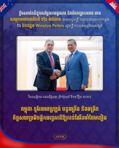 កម្ពុជា-នូវែលសេឡង់ បន្តពង្រឹង និងពង្រីកកិច្ចសហប្រតិបត្តិការទ្វេភាគីឱ្យកាន់តែរឹងមាំថែមទៀត នាព្រឹកថ្ងៃទី២៩ ខែវិច្ឆិកា ឆ្នាំ២០២៥, សម្តេចមហាបវរធិបតី ហ៊ុន ម៉ាណែត នាយករដ្ឋមន្ត្រី នៃព្រះរាជាណាចក្រកម្ពុជា បានអនុញ្ញាតឱ្យ ឯកឧត្តម Winston Peters រដ្ឋមន្ត្រីការបរទេសនូវែលសេឡង់ និង គណៈប្រតិភូចូលជួបសម្ដែងការគួរសម និងពិភាក្សាការងារ នៅវិមានសន្តិភាព។ ឯកឧត្តមរដ្ឋមន្ត្រីការបរទេសនូវែលសេឡង់ បានថ្លែងអំណរគុណយ៉ាងជ្រាលជ្រៅជូនចំពោះ សម្ដេចបវរធិបតី ដែលបានចំណាយពេលដ៏មមាញឹក អនុញ្ញាតឱ្យរូបឯកឧត្តម និងគណៈប្រតិភូ បានចូលជួបសម្តែងការគួរសម និងពិភាក្សាការងារ។ ឯកឧត្តមរដ្ឋមន្ត្រី បានកោតសរសើរចំពោះការរីកចម្រើនគួរឱ្យកត់សម្គាល់របស់កម្ពុជា។ ជាមួយគ្នានេះ, ឯកឧត្តមរដ្ឋមន្ត្រី ក៏បានសម្ដែងនូវការពេញចិត្តចំពោះទំនាក់ទំនង និងកិច្ចសហប្រតិបត្តិការដ៏ល្អប្រសើរ នូវែលសេឡង់-កម្ពុជា និងបានគូសបញ្ជាក់ថា នូវែលសេឡង់ ជាដៃគូដ៏យូរអង្វែងរបស់កម្ពុជា ហេីយនូវែលសេឡង់នឹងបន្តគាំទ្រ ក៏ដូចជាការពង្រឹង និងពង្រីកទំនាក់ទំនង និងកិច្ចសហប្រតិបត្តិការទ្វេភាគី ឱ្យកាន់តែរឹងមាំថែមទៀត។ ឯកឧត្តមរដ្ឋមន្ត្រី ក៏បានអរគុណកម្ពុជា ដែលបានគាំទ្រដល់ការភ្ជាប់ទំនាក់ទំនង និងកិច្ចសហប្រតិបត្តិការរវាងនូវែលសេឡង់ និងអាស៊ាន ពិសេស ការគាំទ្រលើការបង្កើត “ភាពជាដៃគូយុទ្ធសាស្ត្រគ្រប់ជ្រុងជ្រោយរវាង អាស៊ាន និងនូវែលសេឡង់” ដែលបានប្រកាសជាផ្លូវការក្នុងកិច្ចប្រជុំកំពូលអាស៊ាន លើកទី៤៧ នៅប្រទេសម៉ាឡេស៊ី កាលពីខែតុលា ឆ្នាំ២០២៥ កន្លងទៅនេះ។ សម្ដេចបវរធិបតី បានសម្ដែងនូវសេចក្ដីសោមនស្សរីករាយ និងស្វាគមន៍យ៉ាងកក់ក្ដៅចំពោះដំណើរទស្សនកិច្ចរបស់ឯកឧត្តមរដ្ឋមន្ត្រី និងគណៈប្រតិភូមកកម្ពុជានាពេលនេះ និងបានគូសបញ្ជាក់ថា ដំណើរទស្សនកិច្ចនេះនឹងចូលរួមចំណែកដល់ការពង្រឹង និងពង្រីកកិច្ចសហប្រតិបត្តិការទ្វេភាគីឱ្យកាន់តែខ្លាំងក្លាថែមទៀត។ សម្ដេចបវរធិបតី បានថ្លែងអំណរគុណចំពោះរដ្ឋាភិបាល និងប្រជាជននូវែលសេឡង់ ដែលបានគាំទ្រដល់ដំណើរការស្វែងរកសុខសន្ដិភាពនៅកម្ពុជា និងបានចូលរួមចំណែកដល់ការអភិវឌ្ឍសង្គម-សេដ្ឋកិច្ចនៅកម្ពុជា ចាប់តាំងពីទសវត្សរ៍ ឆ្នាំ១៩៩០ រហូតមកដល់ពេលបច្ចុប្បន្ន។ សម្ដេចបវរធិបតី ក៏បានស្វាគមន៍ចំពោះលទ្ធផលជាផ្លែផ្កានៃកិច្ចពិគ្រោះយោបល់លើកទី៣ រវាងក្រសួងការបរទេសនៃប្រទេសទាំងពីរ ដែលបានរៀបចំឡើងកាលពីខែសីហា កន្លងទៅ និងលើកទឹកចិត្តដល់ក្រសួងការបរទេសនៃប្រទេសទាំងពីរបន្តនូវយន្តការនេះឱ្យបានទៀងទាត់ ដោយ សម្ដេចបវរធិបតី ជឿជាក់ថា យន្តការនេះនឹងរួមចំណែកកាន់តែច្រើន ដល់ការពង្រឹង និងពង្រីកកិច្ចសហ-ប្រតិបត្តិការទ្វេភាគីឱ្យកាន់ត